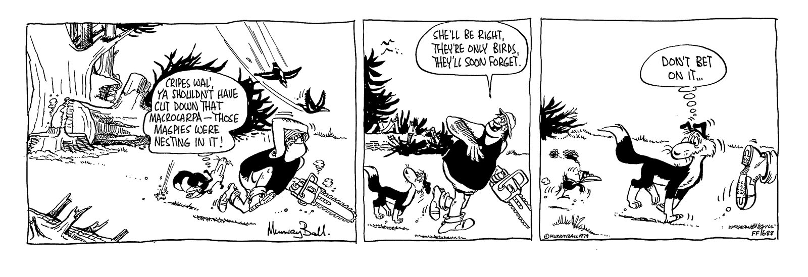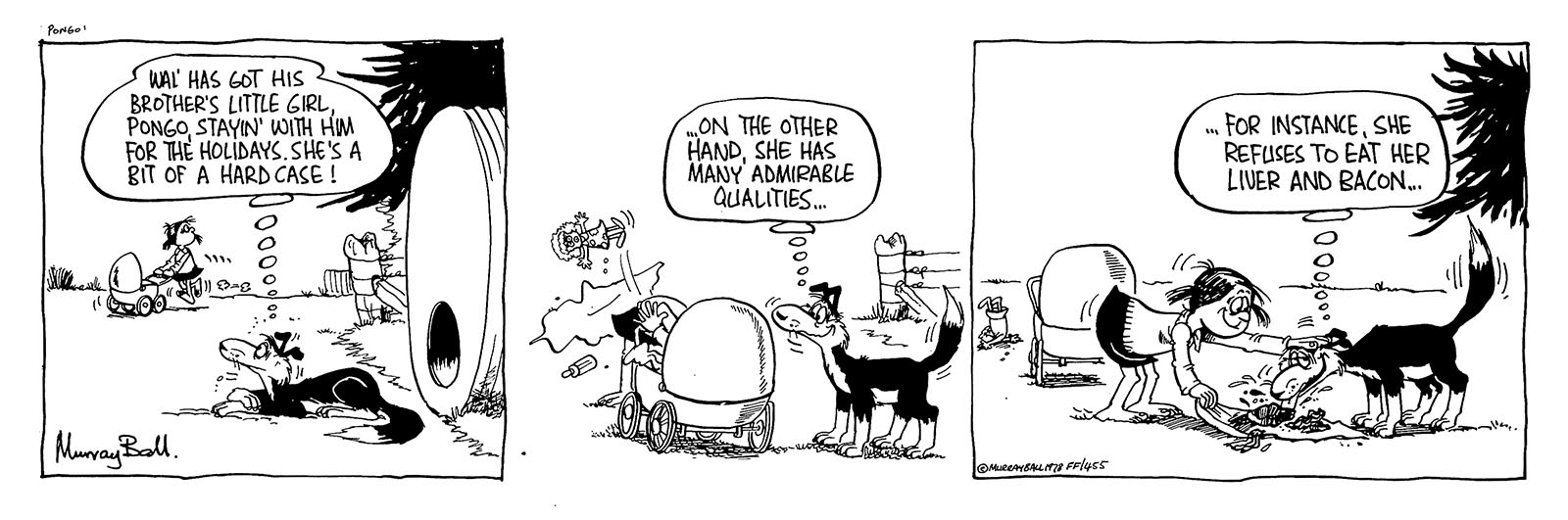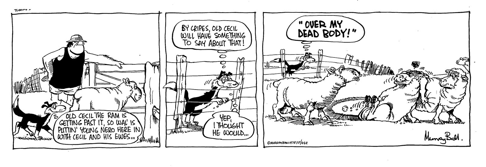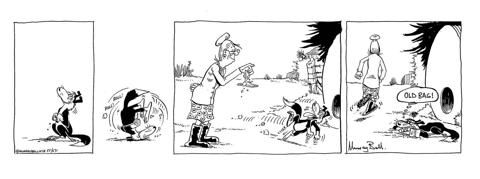 "In Aunt Dolly’s case, her physical appearance is somewhat like that of one of my aunts. Her nature, on the other hand, is more like that of my grandmother, my mother’s mother - or ‘Frankenstein’ as my father called her. But not so she could hear him". Murray Ball