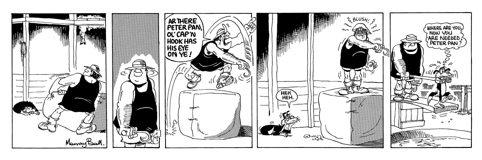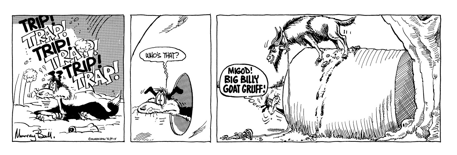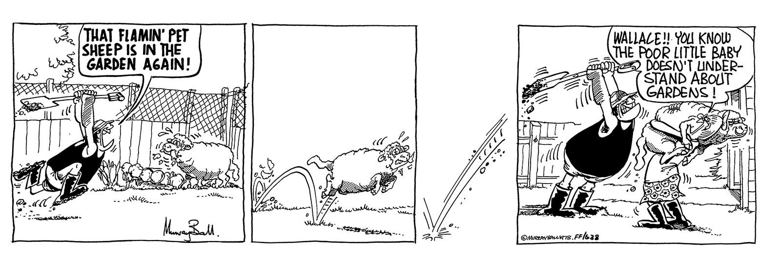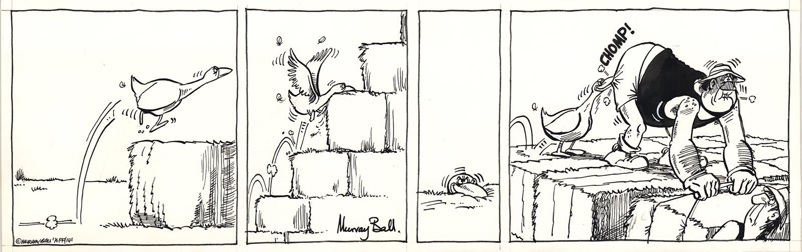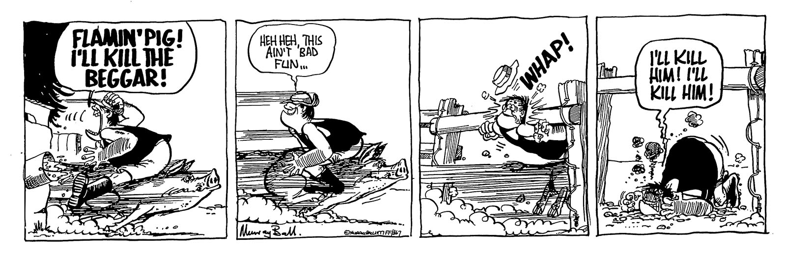 "Major hit him from the side, Like a demolition ball. Smashed him through the hedge, then dragged him back, yet made no sound at all." The Ballard of Footrot Flats