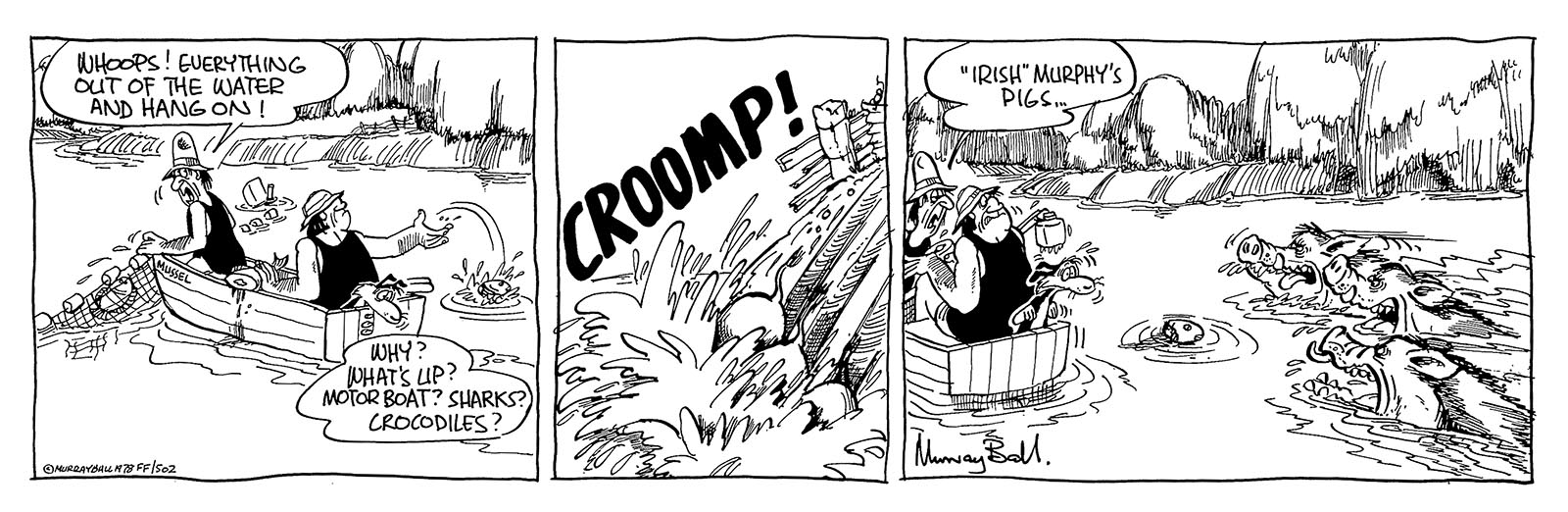 Great hairy monsters, chest high to a tall man, who patrol the swampy bogs behind the Murphy’s barbed wire boundary. It says ‘No trespassing’, and the ‘croco-pigs’ make sure of it.