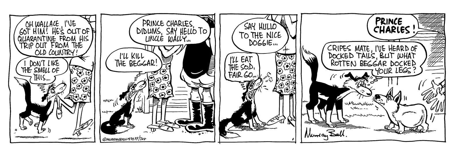 "Poor, useless Charlie has had to carry my republicanism on his hairy, little shoulders (I refer to the corgi, not the Windsor)." Murray Ball