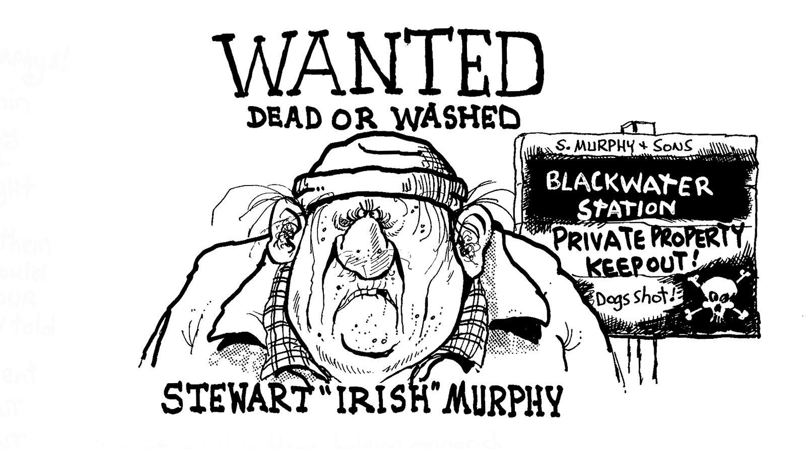 Mangy, balding and gingerish. Smells like a bulldog’s belch. Irish is the deer thieving, dog shooting, ball room dancing leader of the infamous Murphy clan.