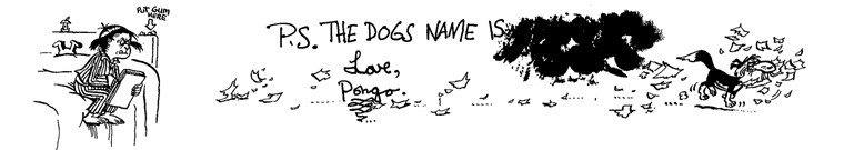 Names are difficult. I drew The Dog well before I thought of his name. For some reason I found it particularly difficult. Nothing seemed to quite cover the Dog’s nature. To start with, I was not sure what his ‘nature’ was to become. Secondly, I am not very good with names. Living with “Ball” as a surname stunts a sensitive soul. In the midst of my ponderings, letters began arriving. Readers seemed to be interested in only one subject – The Dog’s name. “Is the Dog’s name this…?” “Is the Dog’s name that…?