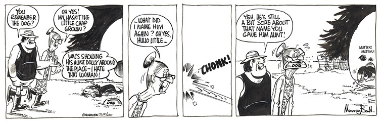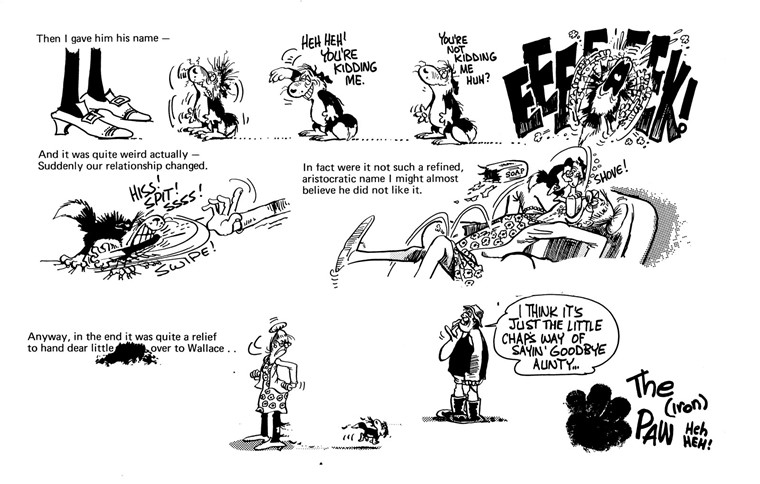 I was probably about 24 strips in to the series when it came to me. It was magnificent – it suited him so-oo well. From that day forth I set about trying to find an opportunity to slip it into the strip. The readers would love it…